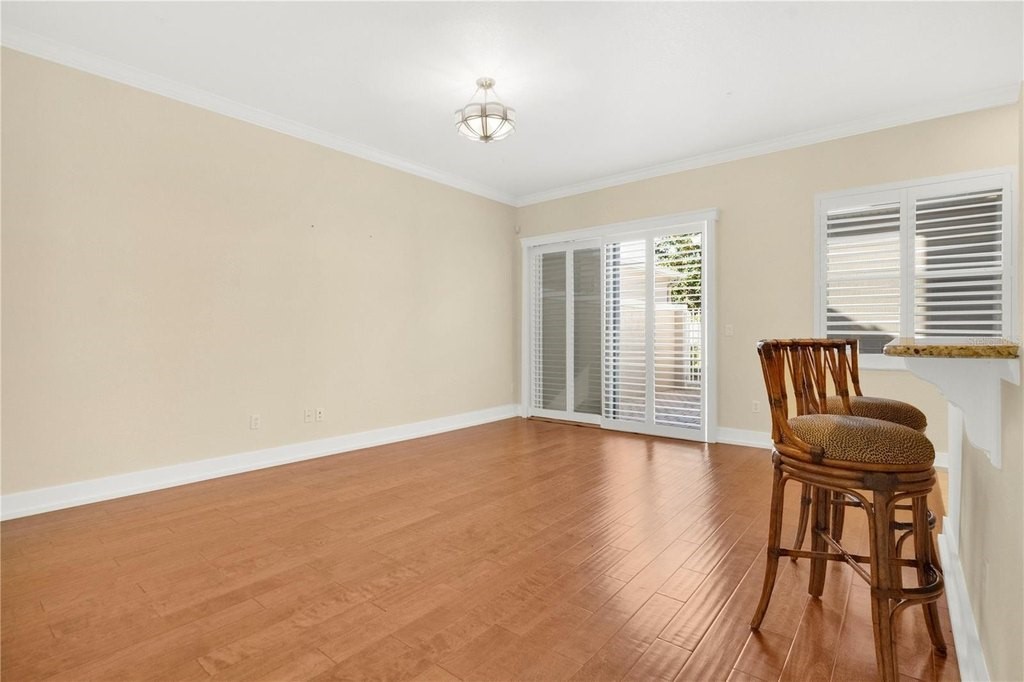 PRISTINE 4 Bedroom 3 Bath End Unit Townhome in Beautiful Preston Square Windermere with Brand New Roof and exterior paint. Charming Front Porch invites you into this fabulous two-story home. Lots of Natural light with wrap around windows and 10-foot ceilings. Stunning hardwood floors, new 6 baseboards in main living areas. Family Room has a stylish accent wall with board & batten design and a secret door to the understairs storage closet. Beautiful Sunburst Wood Shutters with hidden tilt have been added to the sliding doors leading to Courtyard. Spacious kitchen features 42 Solid Wood Cabinetry, granite countertops, accent backsplash, mood lighting and stainless steel Appliances. Downstairs Bedroom with walk-in closet and adjacent bath. Upstairs youll find the Owners suite with tray ceiling. A sliding door leads into a lovely balcony with pool views and a gorgeous magnolia tree providing shade and privacy. The Master Bath has double sinks, spacious garden tub, shower with double shower heads. There are two additional bedrooms and one bath on the 2nd level. The Courtyard is perfect for entertaining. Laundry room has a sink, solid wood cabinetry and window. Attached 2 Car Garage is spacious, and it has utility celling storage racks. Long garage driveway in the back of the home. Preston Square is a beautiful community with a Stunning Resort Style Swimming Pool, lush mature landscaping, basketball court, playground, fitness stations, and a large park that hosts movie nights & food trucks. It is conveniently located, close to everything you want and need. Restaurants, Coffee Shops, Multiple Shopping and Entertainment Venues, Beautiful Golf Courses, Hospitals. Top Rated School District. Close to major roads, can easily move around Orlando, Windermere, and Winter Garden. Enjoy the proximity to Orlandos World Class Theme Parks.